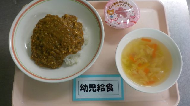 今月の給食です。令和7年3月13日(金)献立:御飯(麦入り)、ドライカレー、野菜スープ、お楽しみおやつ:菓子、麦茶令和7年3月12日(木)献立:御飯、マーマレードチキン、ポテトサラ...